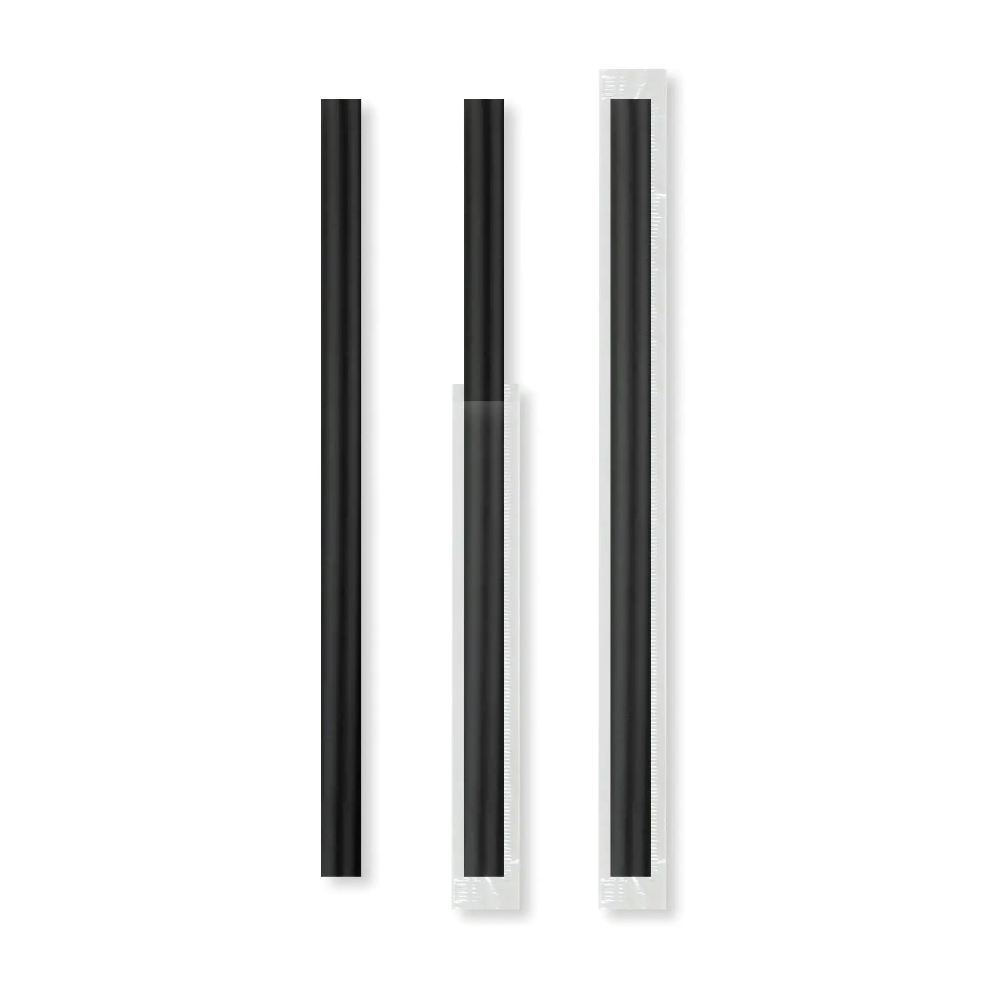 24 cm uzunluğunda, 8 mm çapında, soğuk içeceklerin içimine uygun kalın, geniş çaplı, siyah renkte, tek kullanımlık frozen pipet.